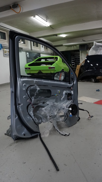 Man kann es kaum glauben, aber der Schaden an diesem Fahrzeug entstand in parkiertem Zustand. Auf Grund der heftigen Kollision wurde die ganze linke Seite erneuert. Heute sieht man nichts mehr von dieser heftigen Kollision dank der perfekten Arbeit unsererseits. aber auch dank Piccinni Autospritzwerk.